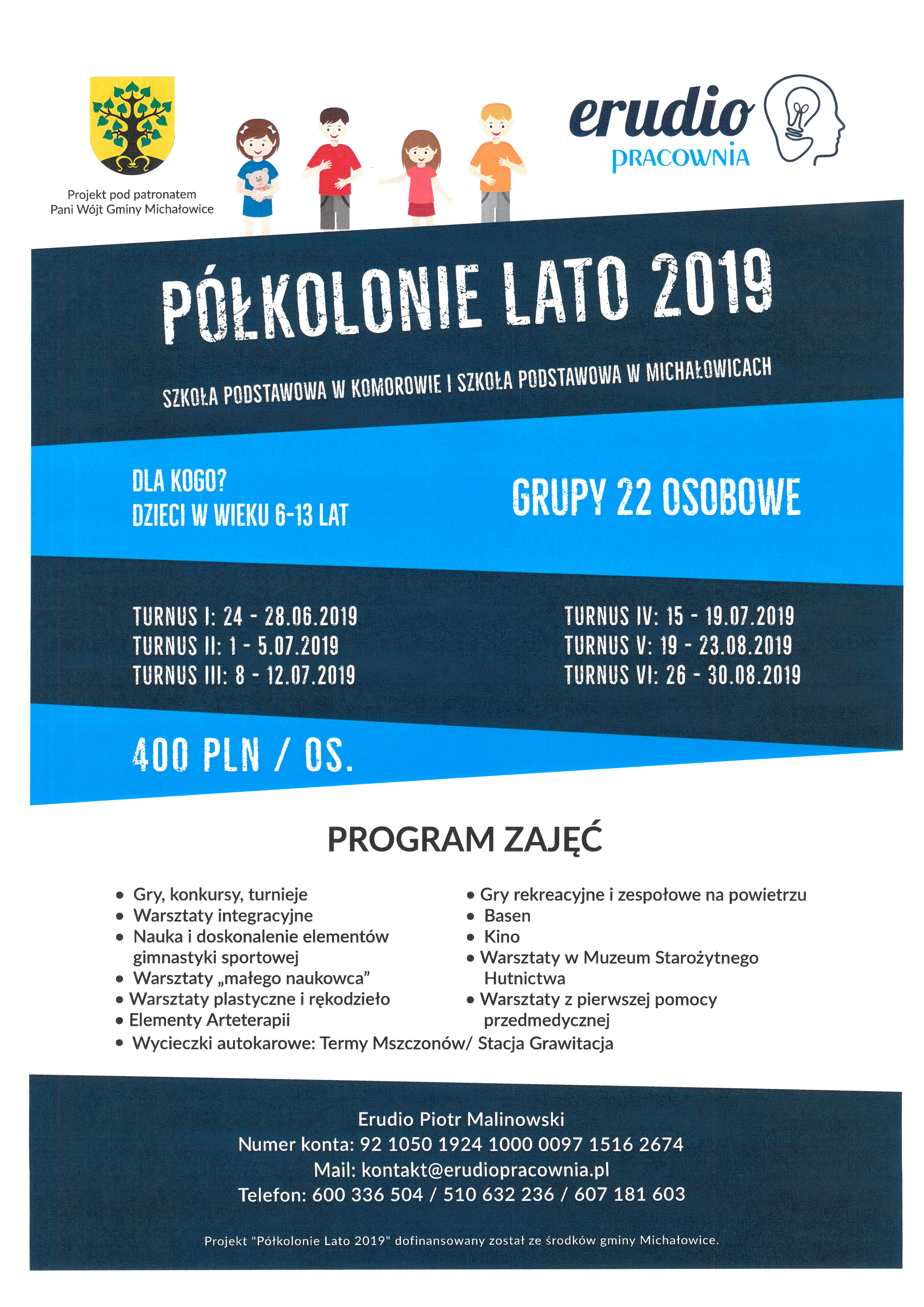 110Informujemy, że trwają zapisy na półkolonie w szkołach w Komorowie i Michałowicach (turnus V i VI).