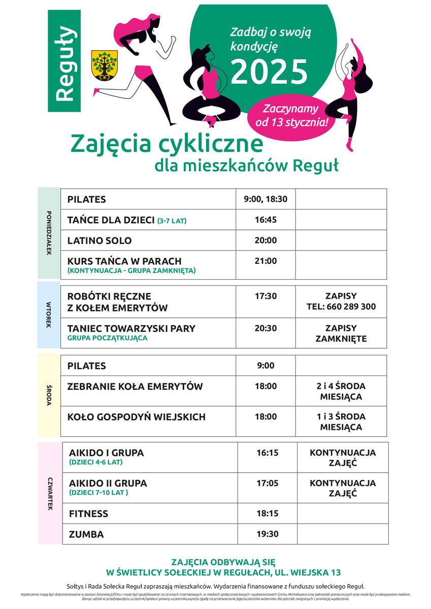 69Sołtys i Rada Sołecka Reguł zapraszają mieszkańców sołectwa na cykliczne zajęcia Zumby.